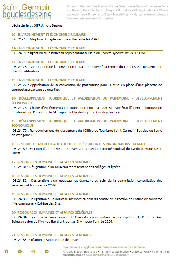 Le prochain conseil communautaire se tiendra le jeudi 26 septembre 2024 à 19h00 , dans les locaux de la CASGBS au Pecq (Parc des Erables – 66 route de Sartrouville – Bât 4, 3ème étage – porte de gauche).