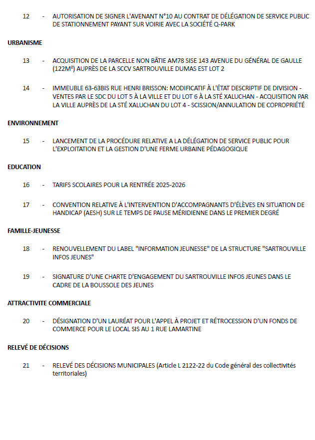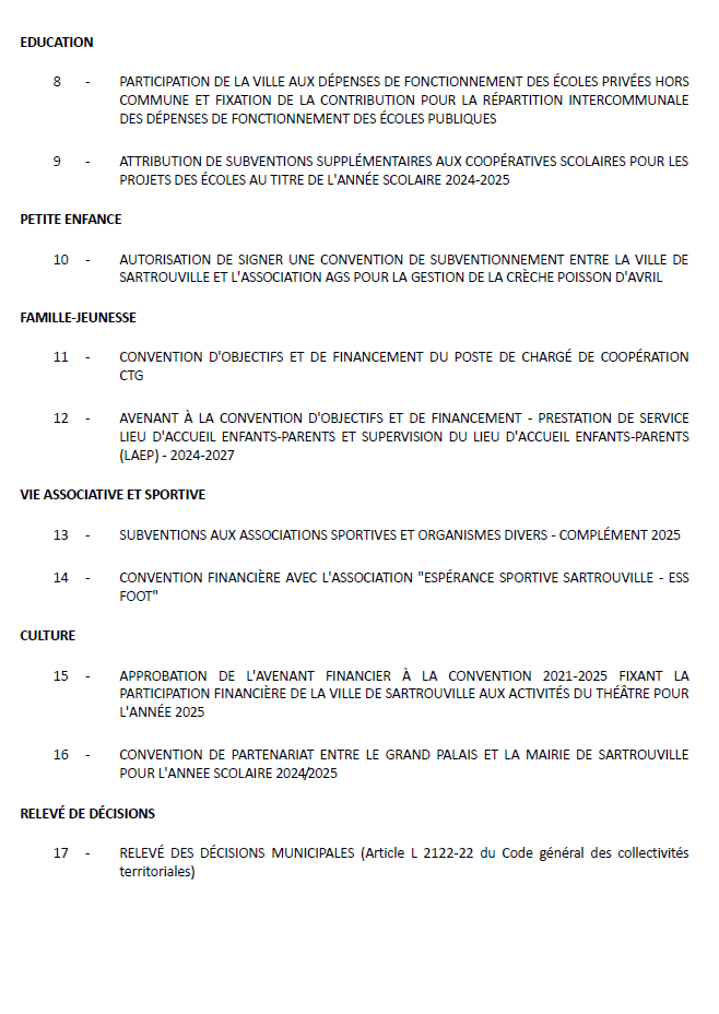 quelques sujets pour le fonctionnement des écoles mais aussi le renouvellement du label « information jeunesse » de la structure « Sartrouville infos jeunes »