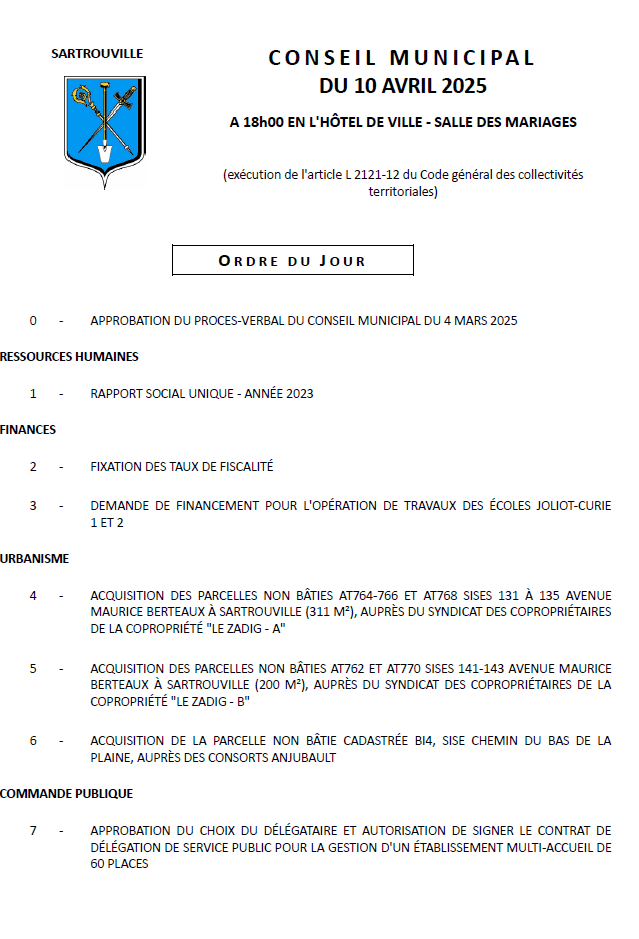 Peu de sujets à l’ordre du jour (très centré sur Sartrouville) :