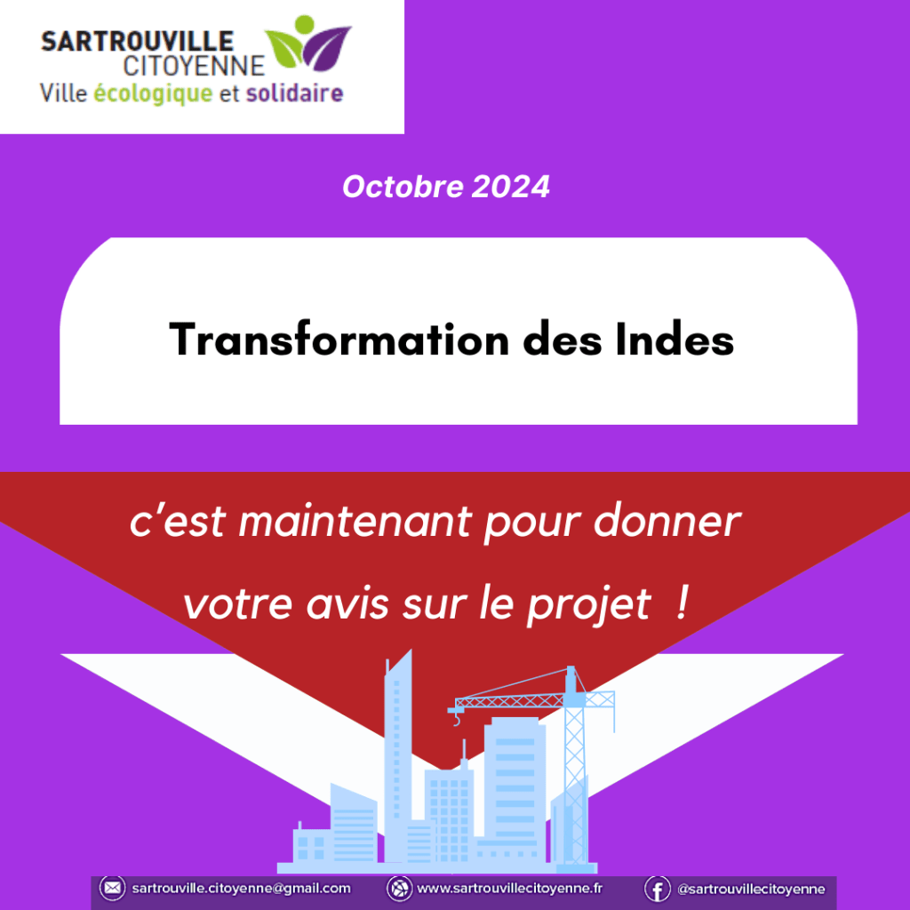 Pour cette nouvelle et 15e vidéo sur la page FB de la ville, parlons de la « Transformation des Indes : c’est maintenant pour donner votre avis sur le projet »