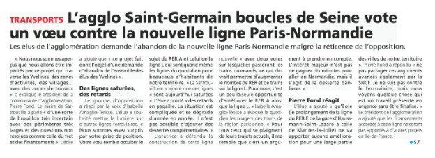 La presse revient sur le refus du groupe (auquel nous participons au conseil communautaire) que soit abandonné le projet de nouvelle ligne Paris-Normandie : nous voulons au contraire des investissements massifs pour remettre à niveau nos lignes du quotidien.